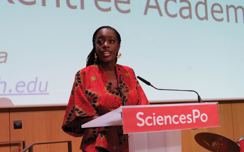 Additionally, Camara offered insights on ethical leadership from her research on militarism and military coups in West Africa. A common trait of coup leaders, she noticed, was blind power—leaders who failed to question their own actions and assumed that their course of action was always the right one. She urged incoming Sciences Po students to think carefully, act ethically, and always question themselves as they step into positions of power that shape global affairs.
