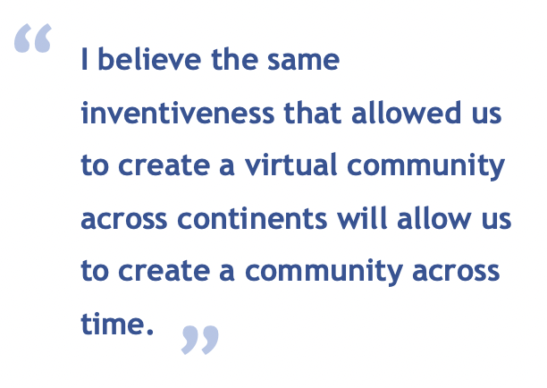 However, I believe the same inventiveness that allowed us to create a virtual community across continents will allow us to create a community across time. The solution, as I see it, is in developing asynchronous activities. Our current crepuscular class schedule is designed to synchronize across time zones, which is essential for class. However, this schedule gives students significant time during the day. For instance, I am most active in the afternoon, which is unfortunately China’s early morning. Similarly, China’s afternoons are my early mornings, meaning that when most Chinese students are awake I am (hopefully) fast asleep. By disconnecting participation from specific times (i.e. asynchronous activities), students can participate in activities when it suits them, building community across time zones.